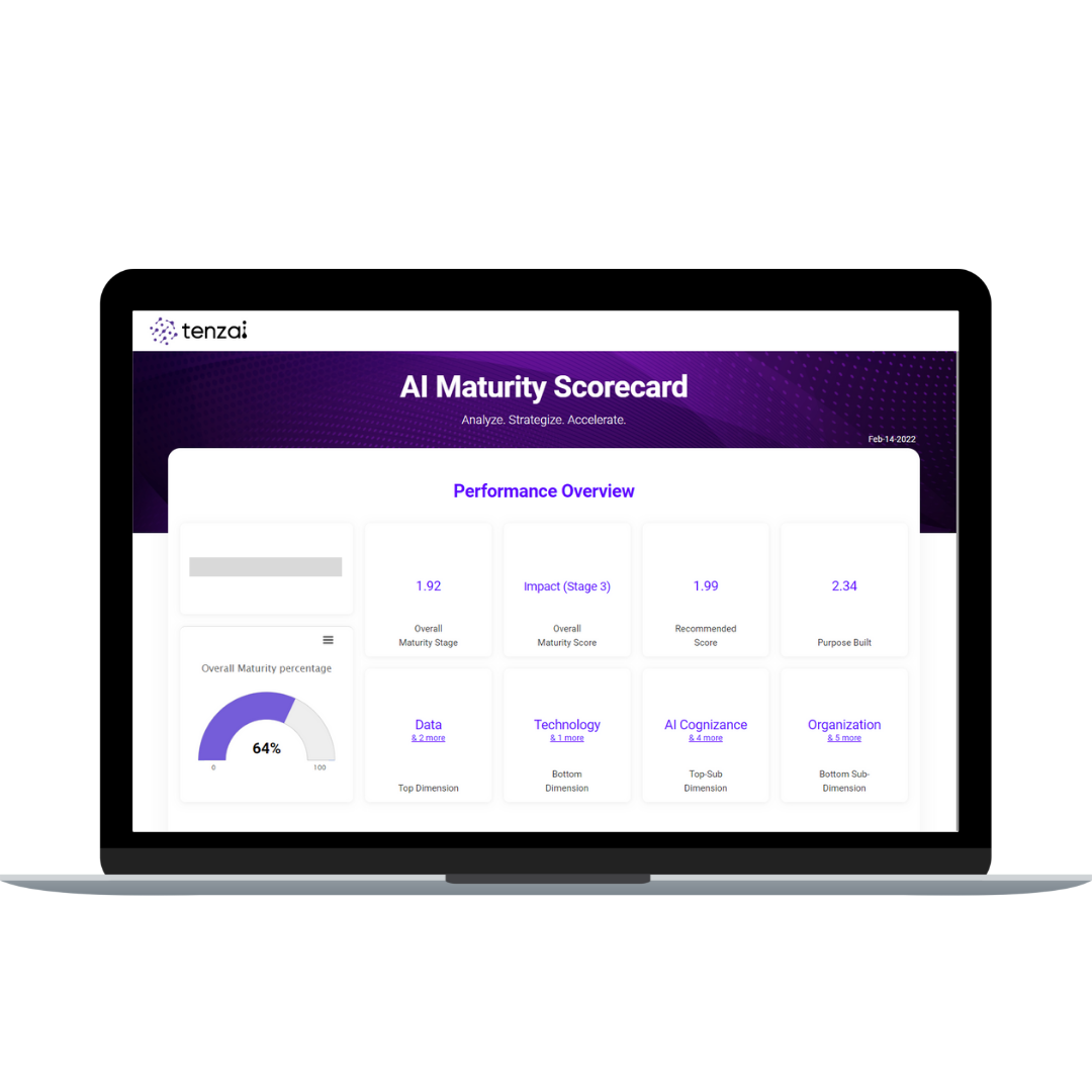 Take AssessmentTenzai's AI maturity assessment framework was extremely broad in scope. It aided us in analyzing our maturity across key dimensions and in benchmarking against similar companies. The recommendations and in-depth analysis assisted us in developing an effective AI roadmap.
